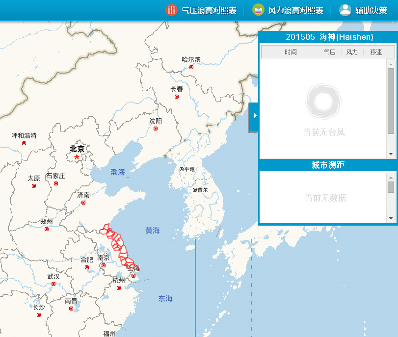台风观测平台准确的标明和记录了台风中心位置(纬度、经度)、台风的强度(气压、风力)、台风的移动速度、台风的移动趋向(路径)...….